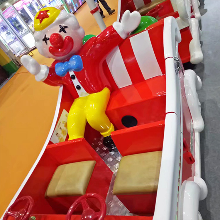 There are retro and elegant trains on the trackless trains, as well as cartoon cute trains. No matter which kind of trackless trains, they must keep up with the trend and design a new generation of attractive small trains. The new children's clowns have no trains. The kids train ride made with the locomotive in front and behind followed by several cartoon seats with a swing-like style for children to play with. Designed for children, the paint is beautifully colored, the whole car is covered with energy-saving and beautiful LED lights, the battery is driven, safe and reliable, and the operation is stable. It is suitable for investment in squares, shopping malls, parks, playgrounds, indoor and outdoor places.