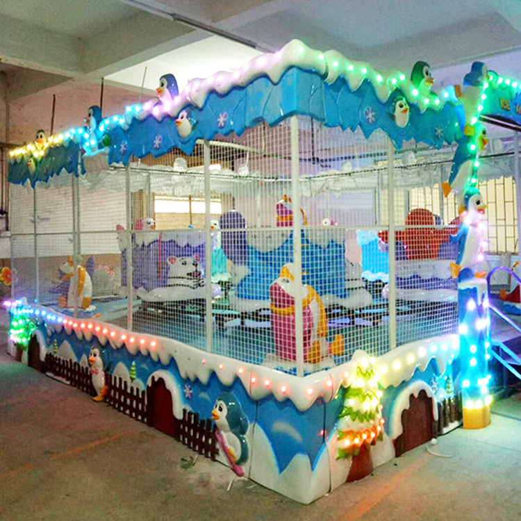 A few penguins in the "Happy Jet Cart" spray ball ride automatically circulate a lot of small balls at the same time when the device is started, and there is a dynamic music with the device's own music. At this time, the child will come over to see what it is, and stimulated Their desire to explore, while breaking the general ride of the general track-type amusement equipment, it can not only take the car along the track, but also use the copy to copy the ball, you can also play with the net, catch the ball by hand. At the same time as many small balls are ejected, the children's hand-eye coordination ability is exercised, and the ball is caught at the moment when the ball falls, and even the adults are happy to catch the ball. The shape of the penguin and the polar bear attracts the children, and the process of playing is full of laughter and laughter.