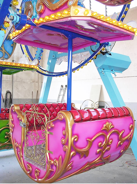 1.Rated load:20rides 2.Height: 5m 3.Cabin: 10pcs 4.Power:5 kw 5.Voltage:380V/220V 50Hz 6.Speed:2rpm 7.Size:5.5m*2.5m