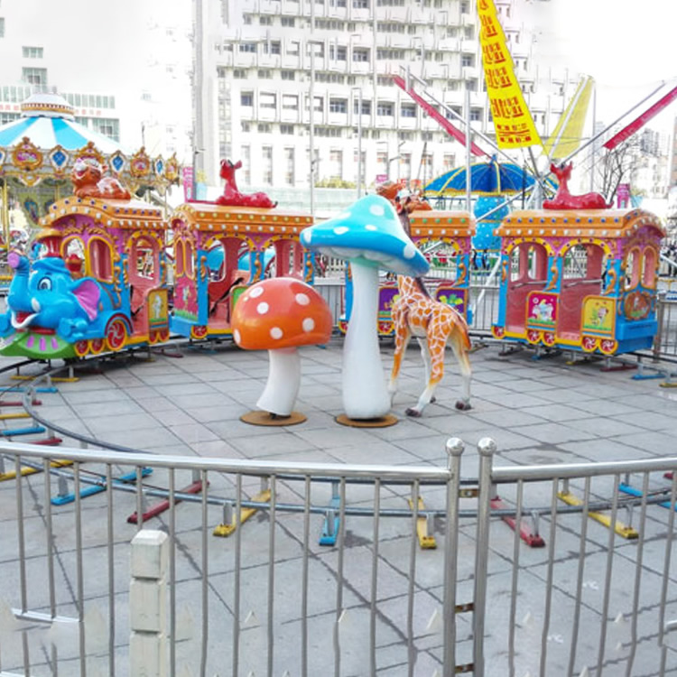 1.locomotive load: 2riders 2.Wagon load: 4riders 3.Wagon size:1.9*1*2.4m 4.Locomotive size:2.1*1*2.4m 5.Rate load:14riders 6.Track Diameter: 10m 7.Speed:6.8km/h 8.Total Power: 2kw 9.Min. turning Radius:3.6m 10.Package:40HQ container