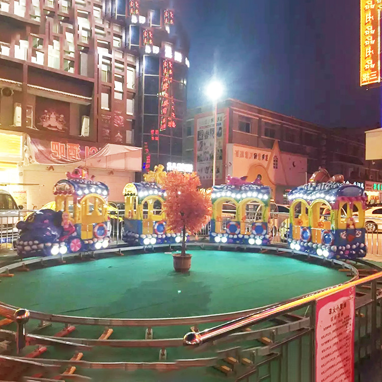 1.Rate load:14riders 2.locomotive load: 2riders 3.Wagon load: 4riders 4.Rated load:2000kg 5.Speed:6.8km/h 6.Track size:10*15m 7.Total Power: 2kw 8.Total weight: 900kg 9.Min. turning Radius:3.6m 10.Track gauge:500mm