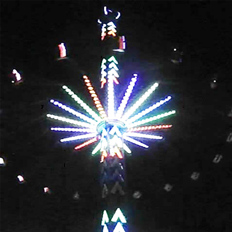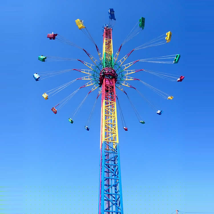 In addition, the top spin arm begins to swing through an arc and the maximum swing angle is 180°. Riders are secured via over the shoulder safety harnesses. Riders are spun in endless circles delivering gravity forces and sensations that need to be experienced to be believed. The whole process of the spinning amusement park rides are fully automatic control.